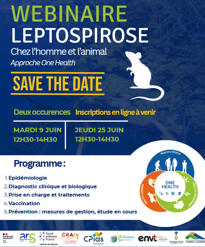 Ce webinaire est proposé en format synchrone de 2 heures, il est ouvert à tous les professionnels de santé humaine et animale, et il permet de balayer les points essentiels relatifs à la leptospirose chez l’homme et chez l’animal.